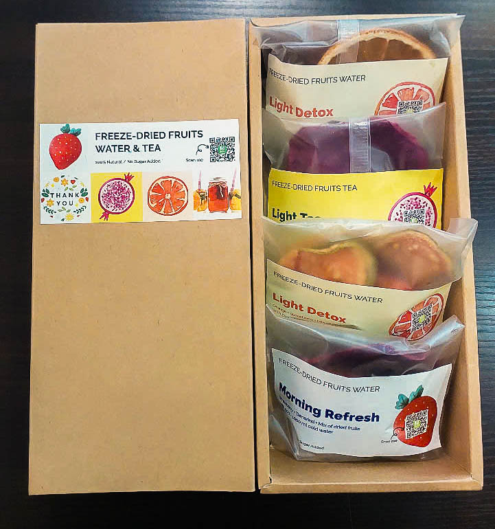 Cold Infusion: Place the fruit pack in 500–1000 ml of cold water. Let it infuse for 30–60 minutes. For the best flavor, leave it overnight in the fridge and wake up to a naturally refreshing, full-bodied taste in the morning.